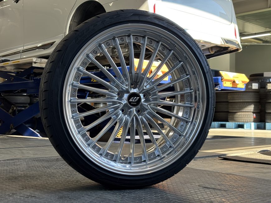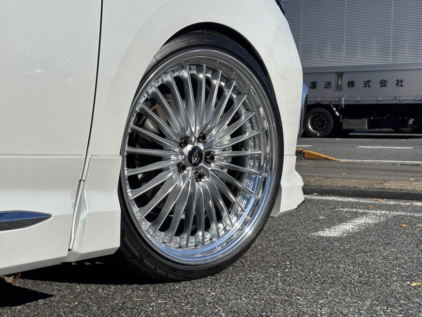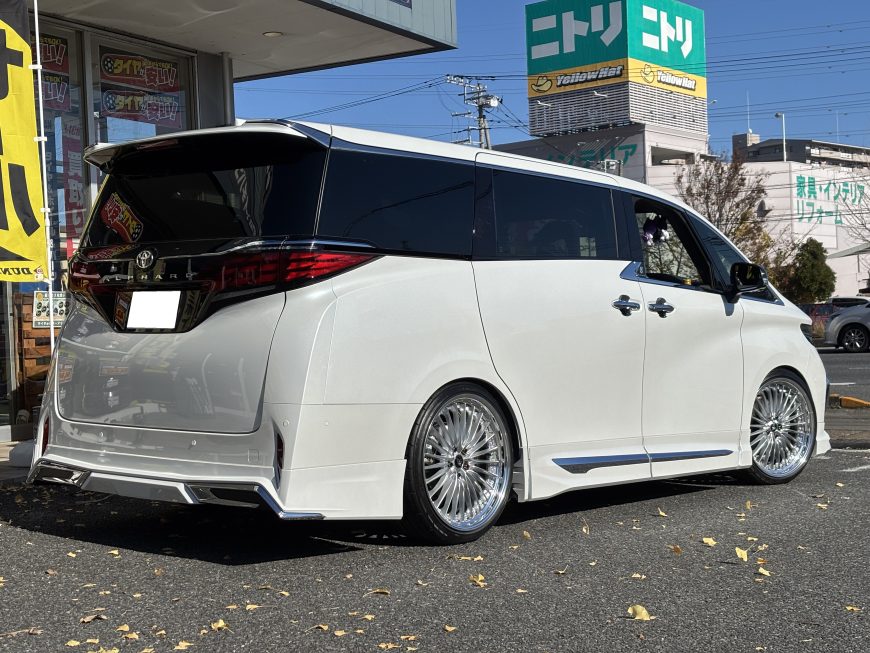もちろん全ての40系アルファードに装着できるサイズではなく、車高調でのローダウン、アライメント調整があってこそのサイズとなります。