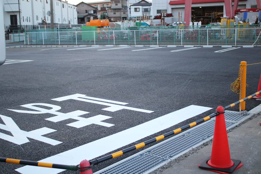 さて、プレオープン時に着工途中だった新店用駐車場工事も進められています。
